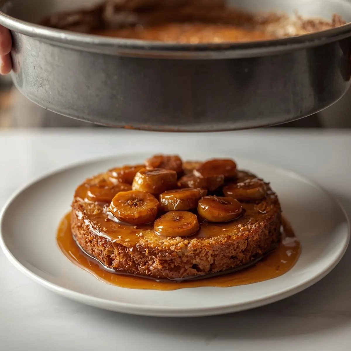 - Assemble: Pour batter gently over the banana topping, spreading evenly.