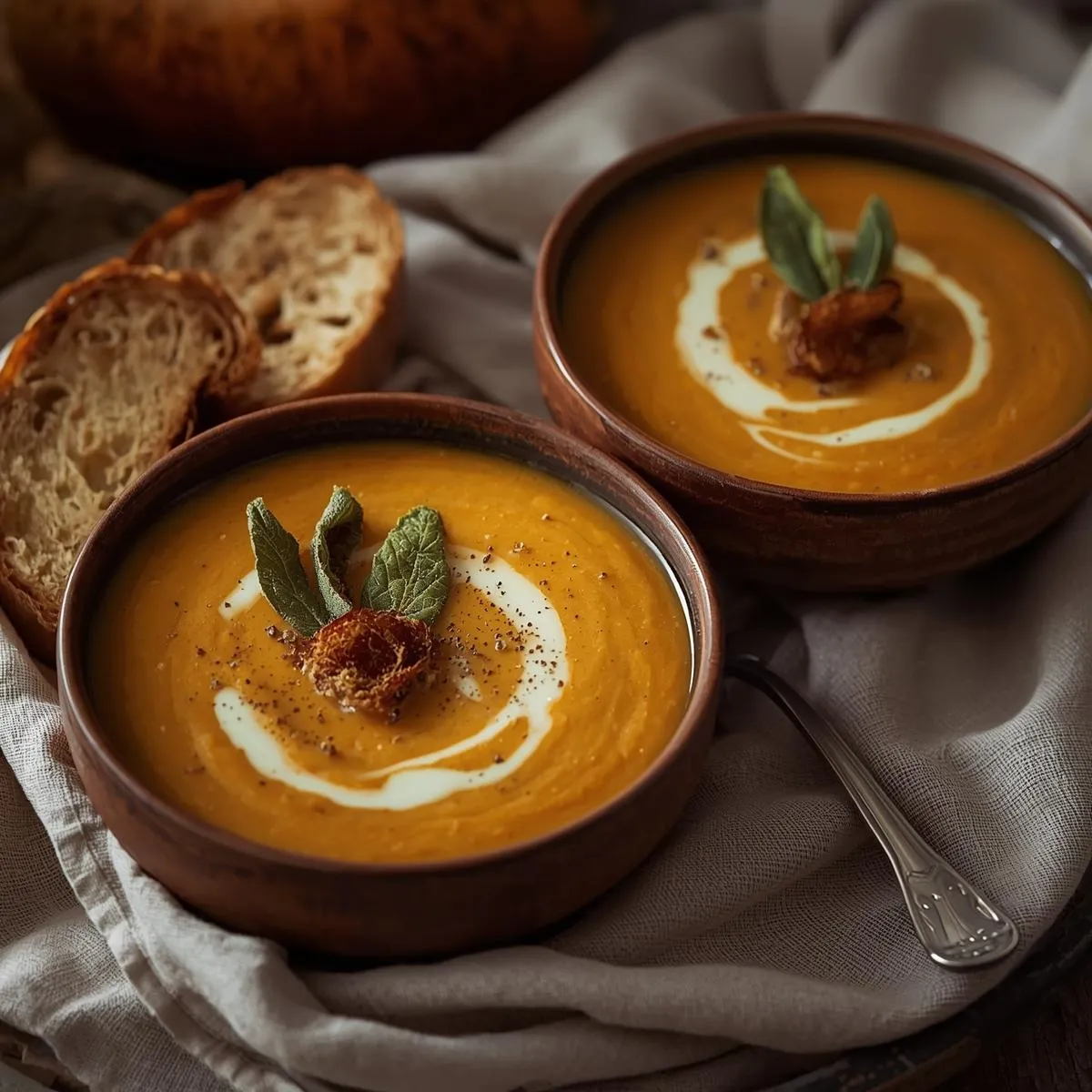 Butternut-Squash & Sage Soup Served with Crusty Bread for Two