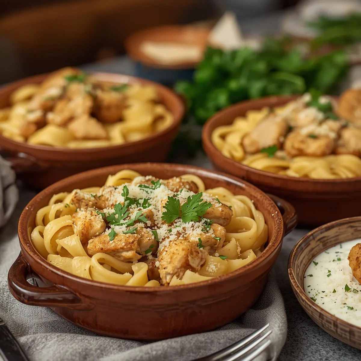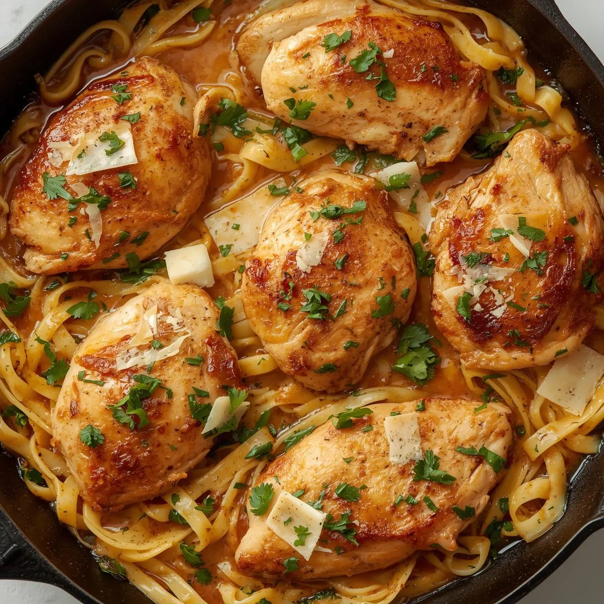 - Combine: Toss noodles in the butter-garlic mixture, add Parmesan, then top with sliced chicken. Garnish with parsley.
