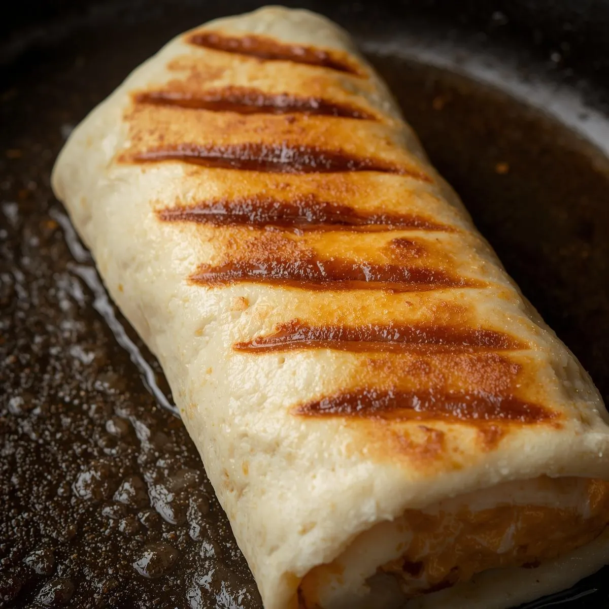 - Grill the burrito – Brush lightly with olive oil and place on a hot skillet or grill pan. Cook 2–3 minutes per side until golden and crispy.