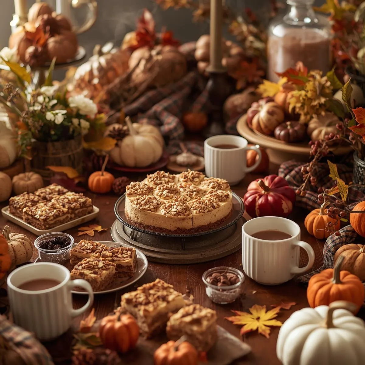 Warm drinks balance the sweetness and complement the cozy flavors of pecan and cheesecake. - A Dollop of Whipped Cream