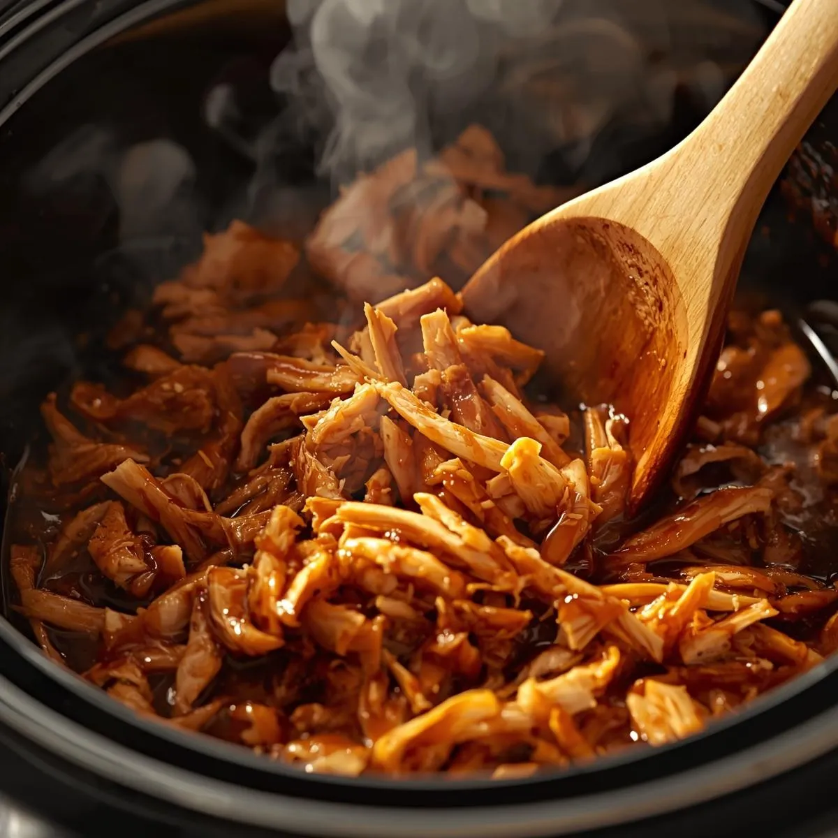 - Shred & thicken – Remove chicken, shred with forks, and set aside. Mix cornstarch with water, stir into crockpot, and cook 10 minutes to thicken sauce.