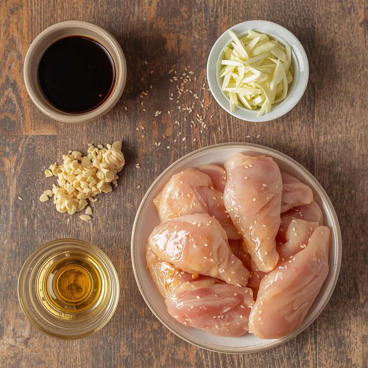 - Dump ingredients – Place chicken in the crockpot. Add soy sauce, honey, vinegar, garlic, and ginger. Stir gently to coat chicken.