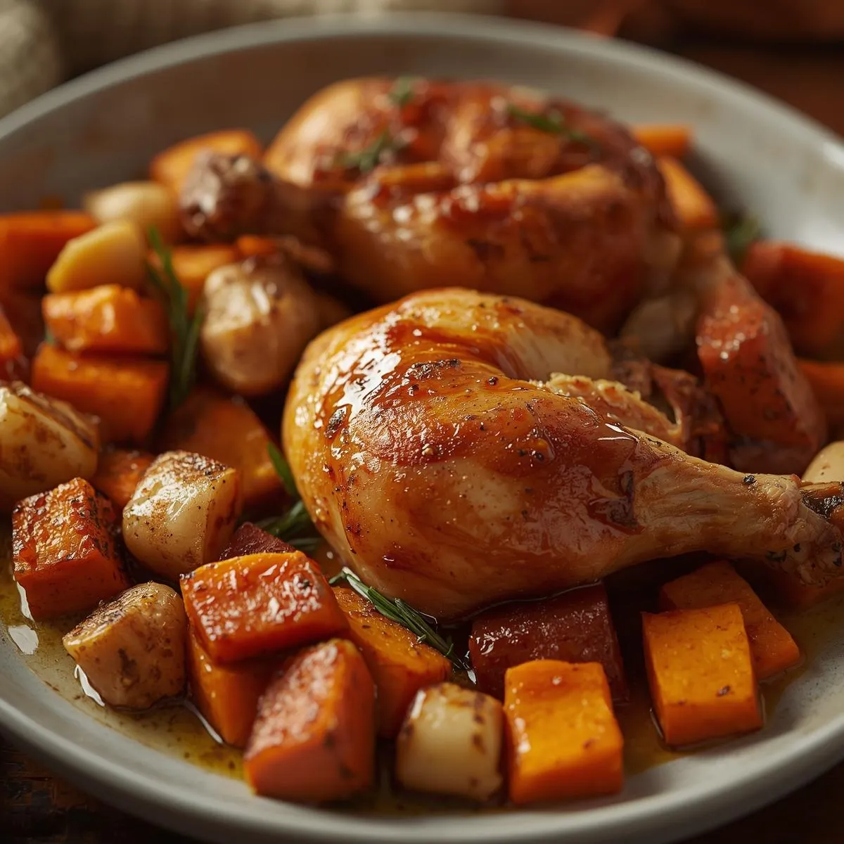 🍎 Sweet & Savory Balance: The tangy apple-cider glaze pairs beautifully with savory chicken and caramelized veggies.