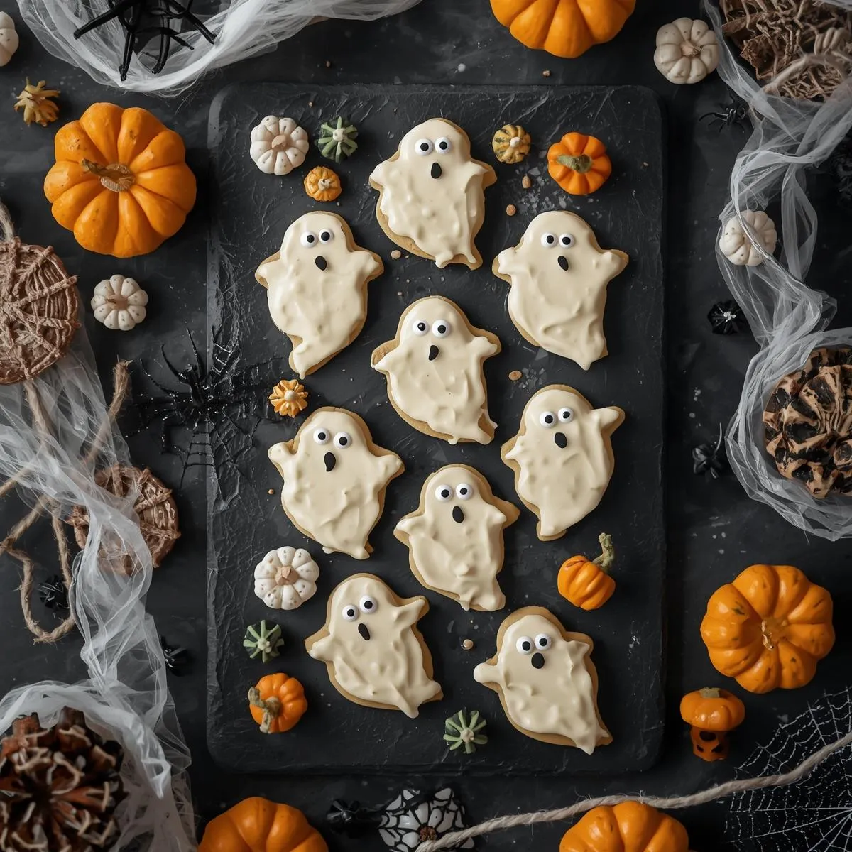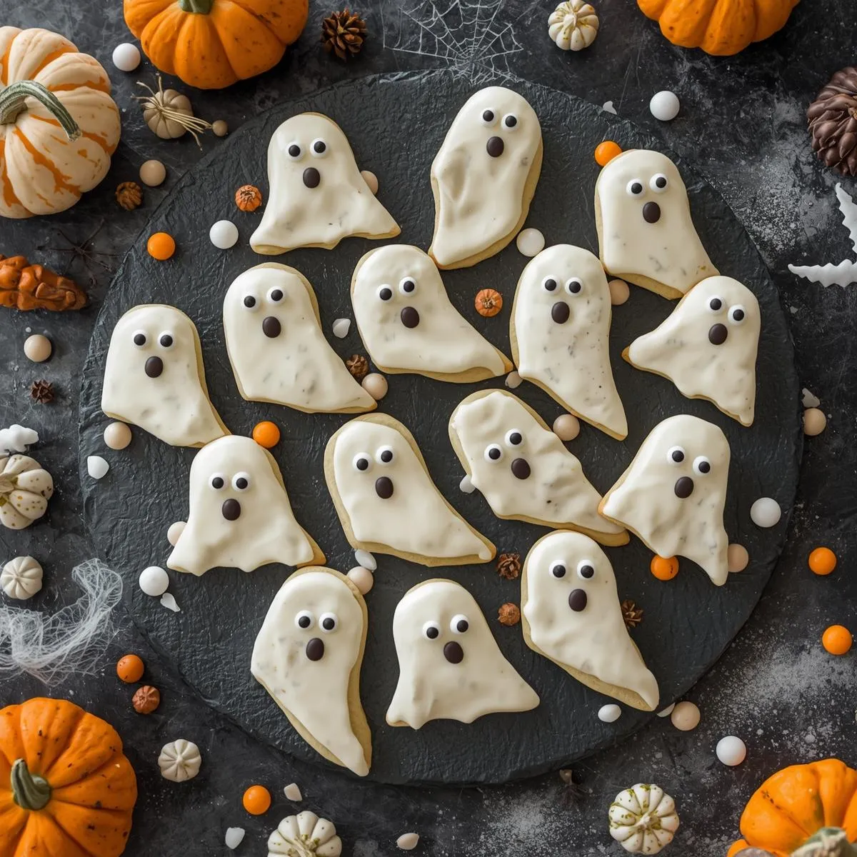 Ghost Cookies are simple cookies dipped in melted white chocolate and decorated to look like ghosts. With candy eyes and a mouth drawn on with melted chocolate or black icing, these sweet treats are both spooky and adorable.