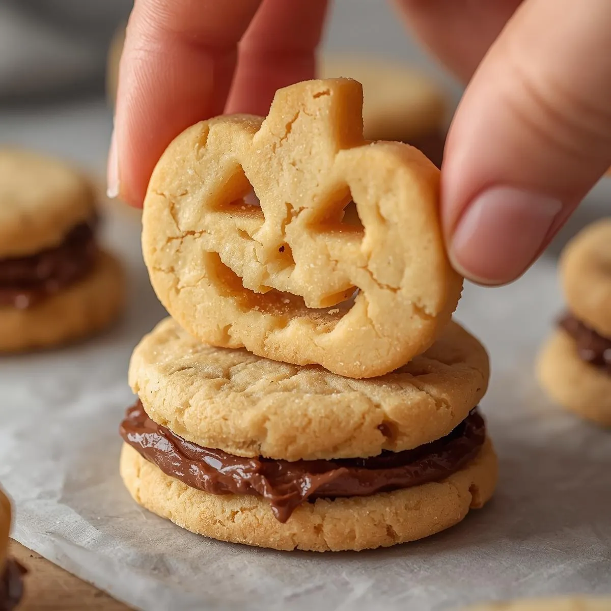 They’re festive, fun to make with kids, and the perfect addition to your Halloween dessert table. Each bite combines soft cookie layers with a creamy chocolate center—spooky, cute, and absolutely delicious.