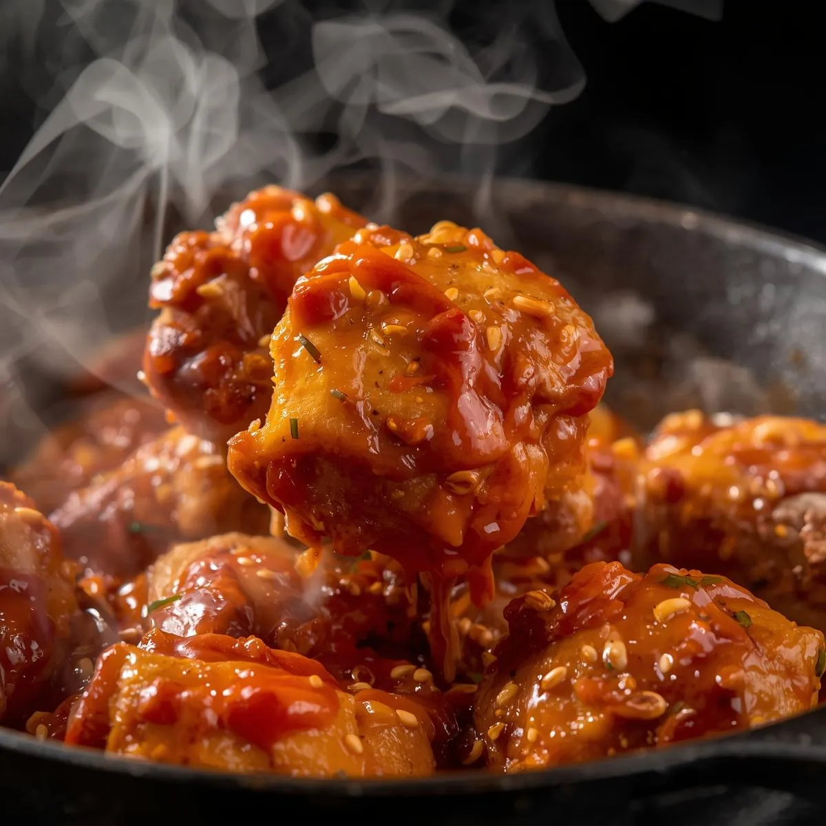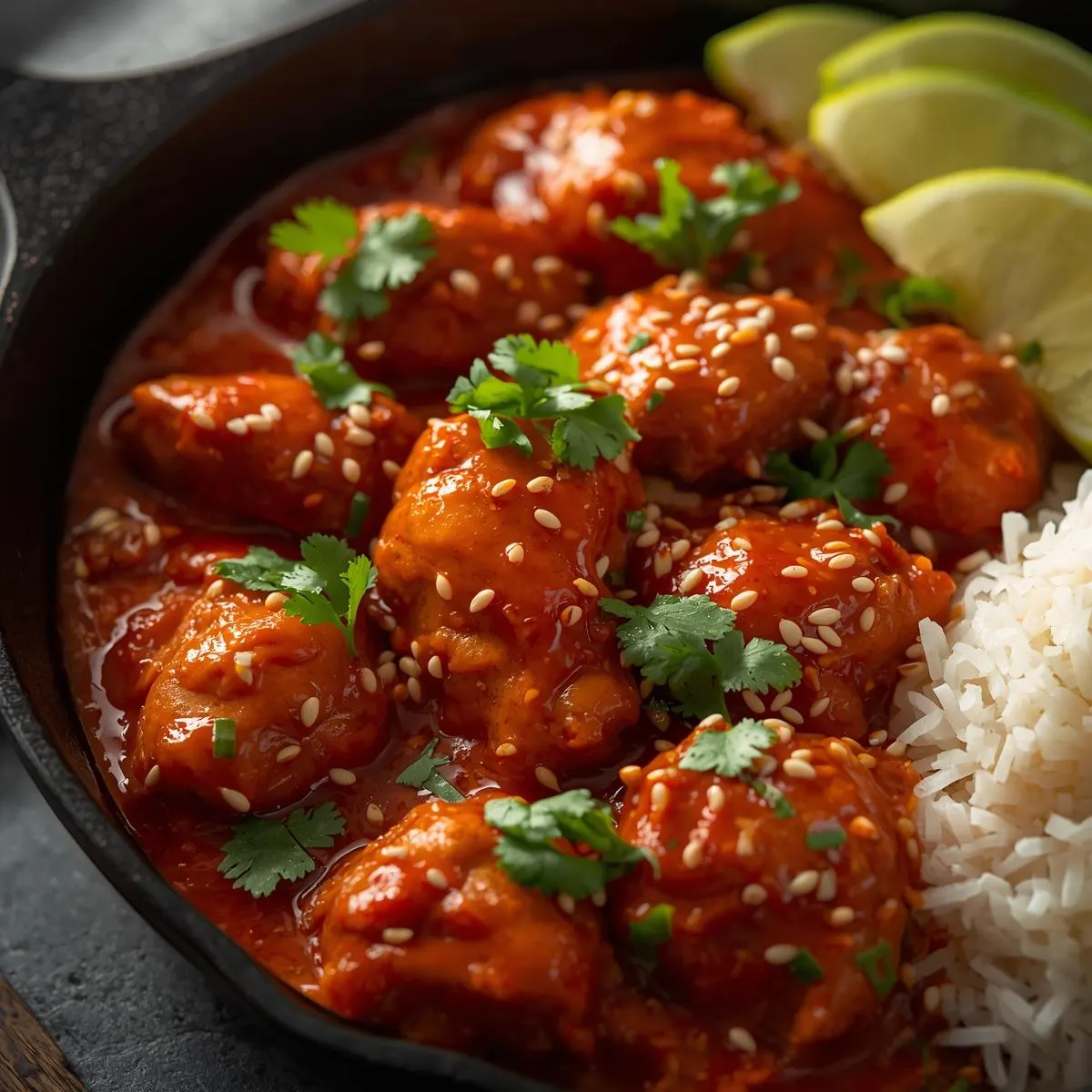 - Coat & serve – Return chicken to the skillet, toss to coat in sauce, and garnish with sesame seeds and cilantro. Serve with rice or noodles.