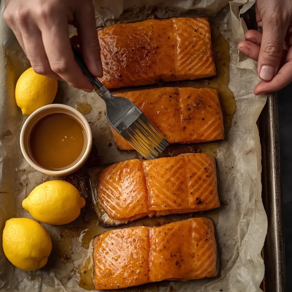 Brush each fillet generously with the maple-mustard mixture. Bake for 12–15 minutes, or until the salmon flakes easily with a fork and the glaze is slightly caramelized.