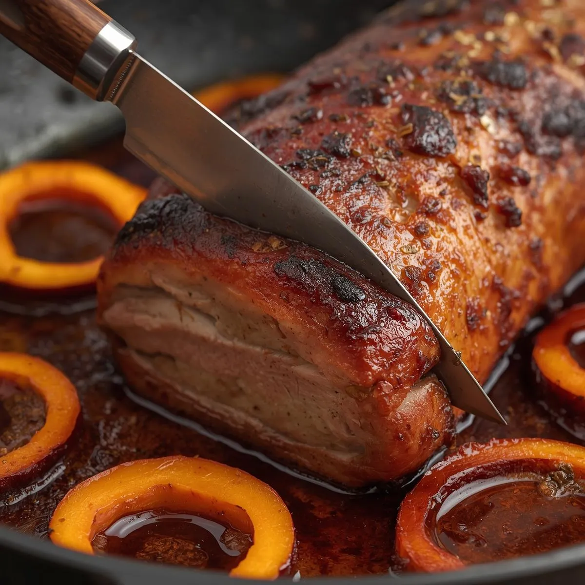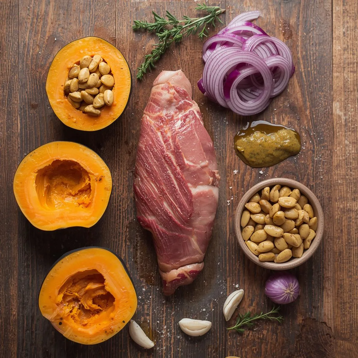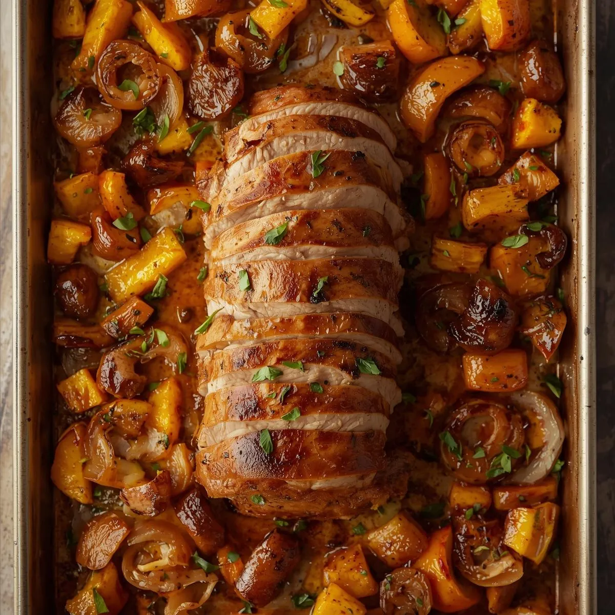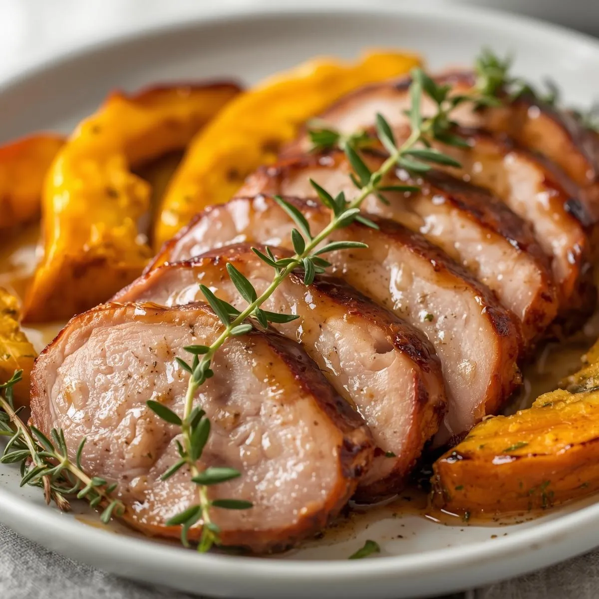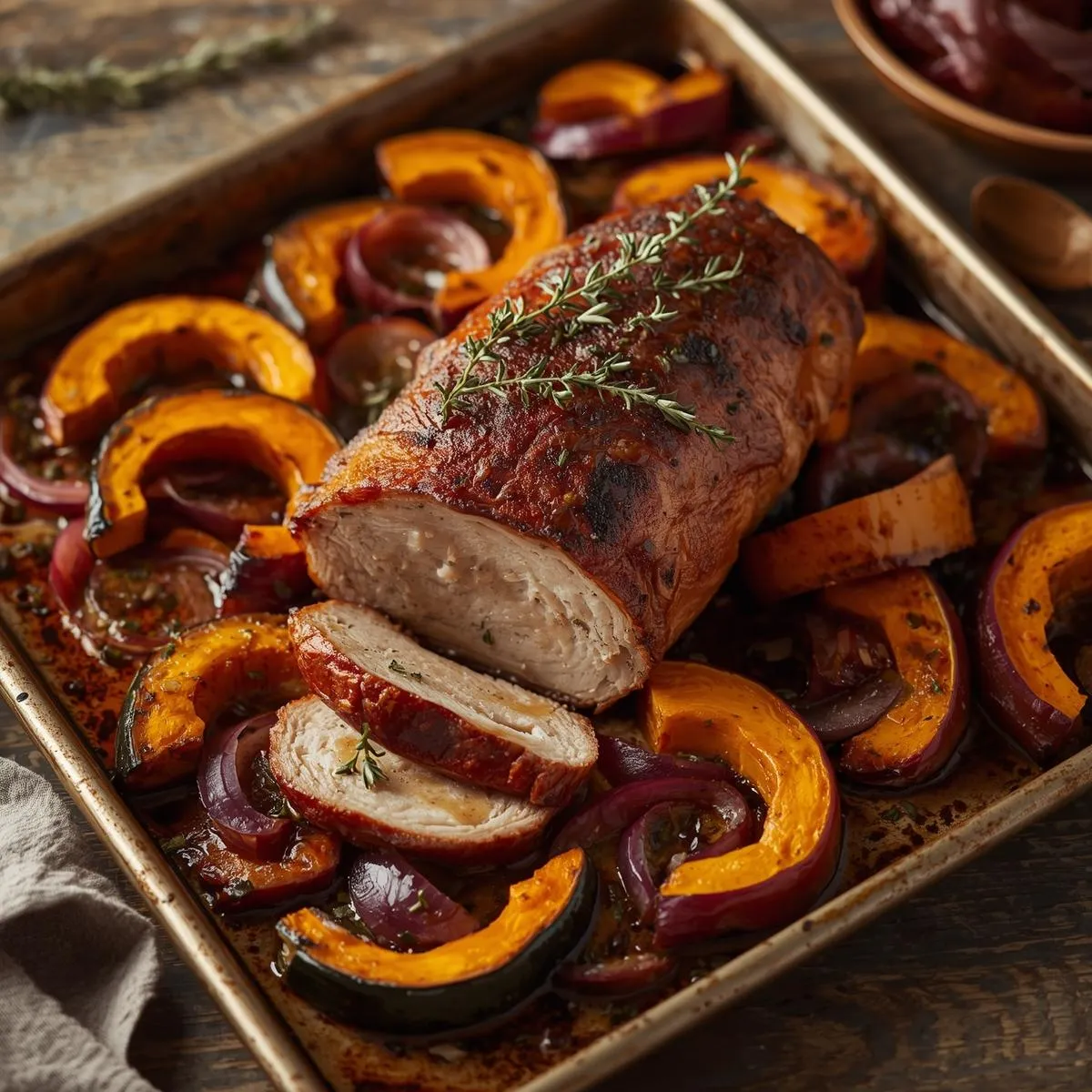 Step 5 – Rest & Serve: Let the pork rest for 5–10 minutes before slicing. Serve with roasted squash and onions, drizzled with any remaining glaze.