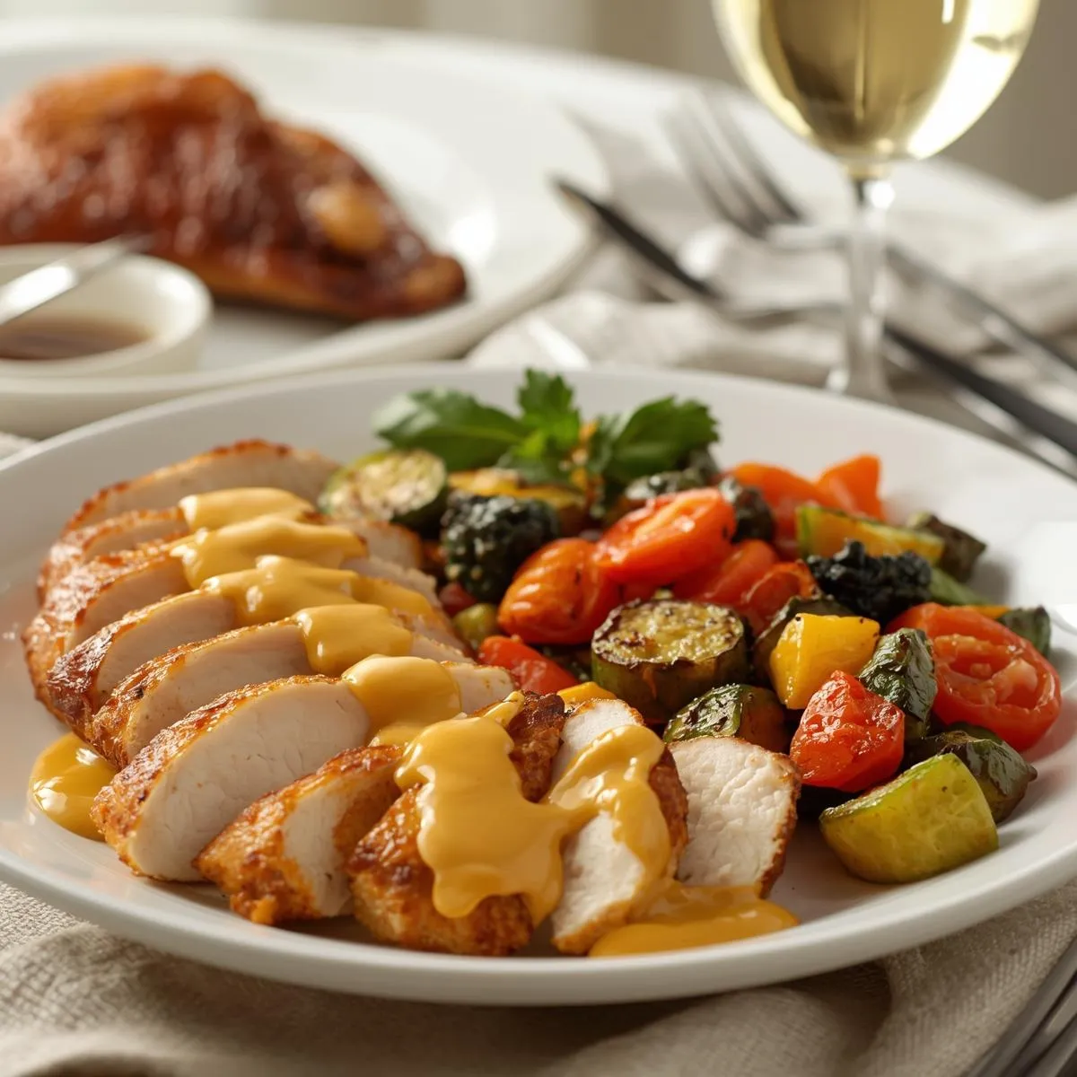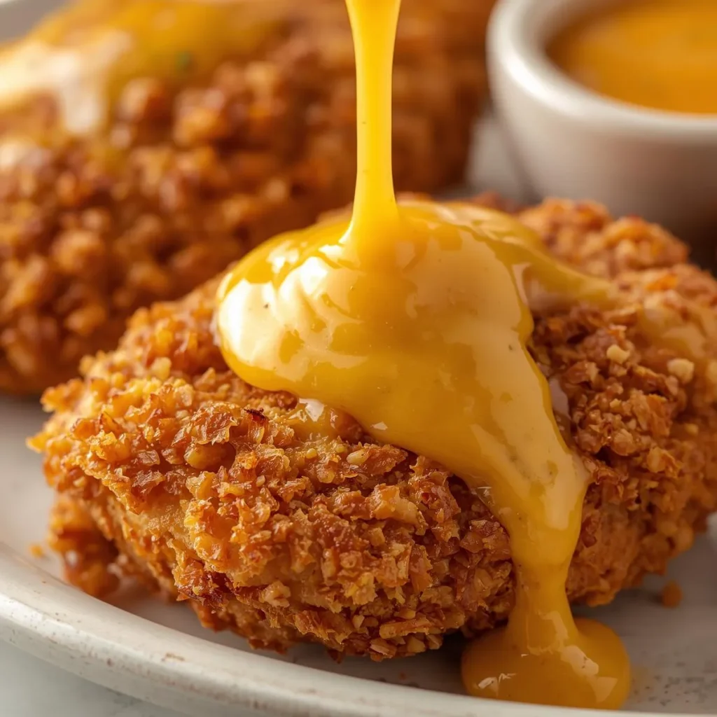 - Serve – Place chicken on a plate, drizzle generously with mustard-cheddar sauce, and serve immediately.