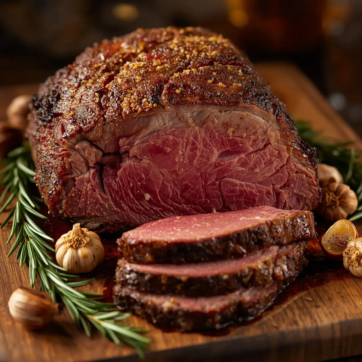 Transfer the roast to a cutting board, tent with foil, and let rest for 20 minutes before carving. This allows the juices to redistribute for maximum tenderness. Slice and serve with au jus or horseradish cream.