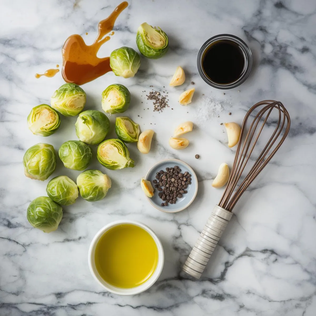 - 1 ½ lbs Brussels sprouts, trimmed and halved