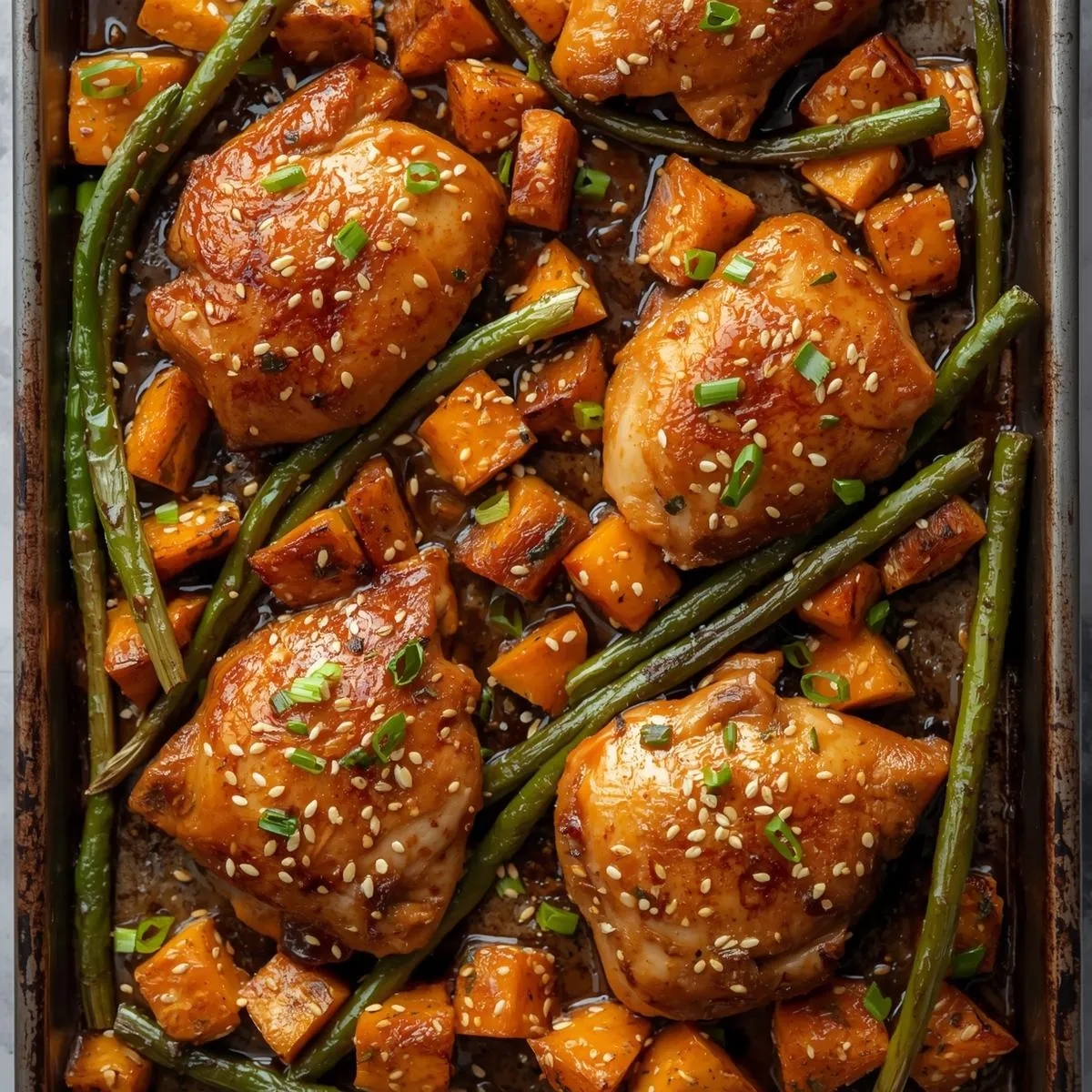 Everything cooks together on one pan, meaning minimal dishes and maximum flavor. The chicken turns perfectly caramelized while the sweet potatoes get crispy on the edges and tender inside — it’s a wholesome, restaurant-quality dinner you can make at home.