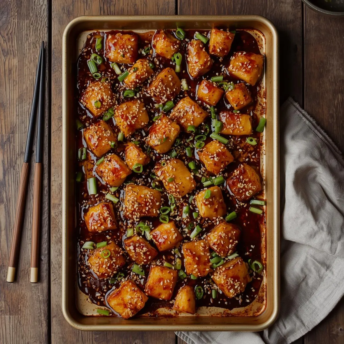 Step 6 – Serve: Garnish with sesame seeds and sliced scallions. Serve directly from the pan for an easy, rustic presentation.