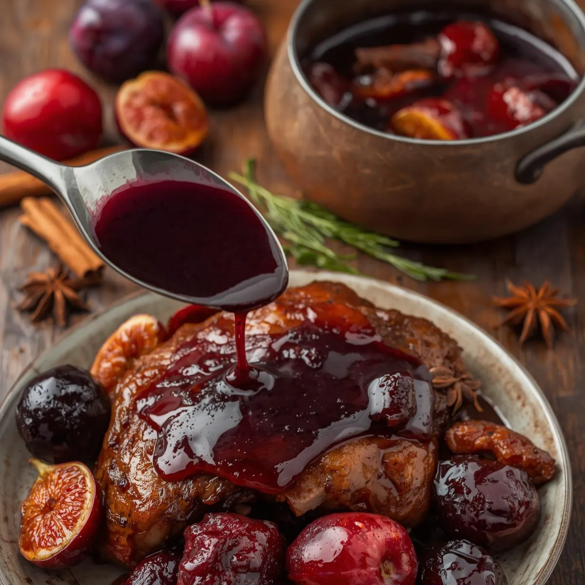This Spiced Plum & Balsamic Glaze is a rich, tangy-sweet reduction that transforms any dish into something special. Made from fresh plums simmered with balsamic vinegar, brown sugar, and warm spices, it’s the perfect blend of fruity depth and velvety acidity. Whether brushed on roasted meats or drizzled over cheese or desserts, this glaze adds a touch of gourmet flair to every bite.